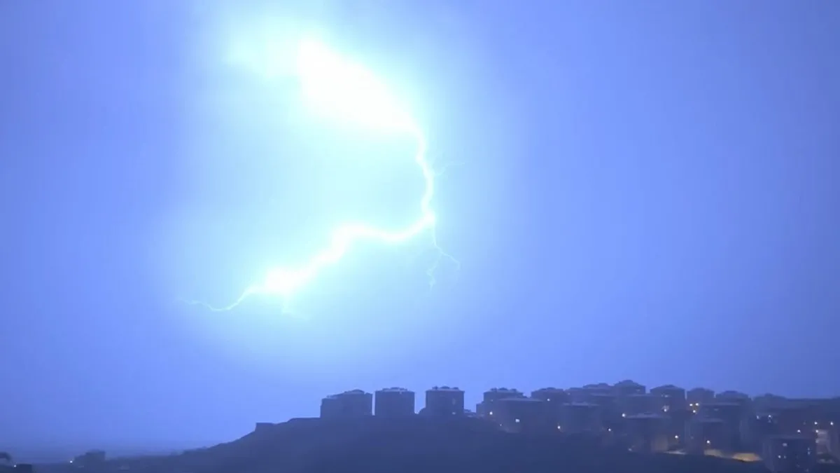 Hakkari’nin Yüksekova ilçesinde etkili olan fırtına ve sağanak yağışla birlikte çakan şimşekler, gökyüzünü aydınlatarak görsel şölen oluşturdu.