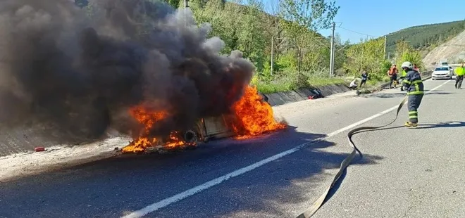 Bilecik'te seyir halindeki araç yanarak küle döndü