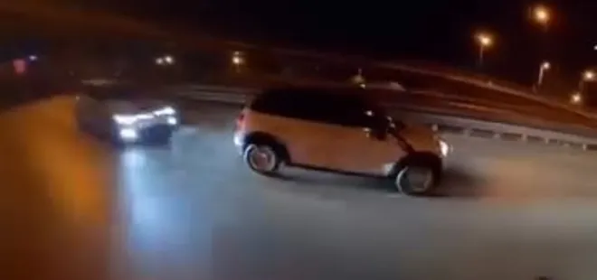 Kadıköy'de İstanbul Çevre Yolu Uzunçayır istikametinde meydana gelen trafik kazasında, seyir halindeki bir otomobilin kontrolünü kaybederek önündeki araca çarpma anı saniye saniye görüntülendi. Kaza, o sırada yol üzerinde bulunan bir motosikletlinin kask kamerasına yansıdı.