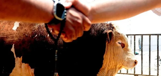 Kurban pazarının yıldızı 1,5 tonluk Poyraz, 540 bin TL'ye alıcı buldu. (DHA)
