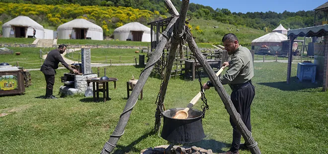 Bakir Anadolu'nun hikayeleri ve güzel yemekleri eşliğinde misafirlerini ağırladıklarını dile getiren Bölük, "Kurban Bayramı'nda, bayrama özel sultan kahvaltımız ve yine bayrama özel dokunuşlar yaptığımız tadım menüleri var. Hikayelerle sunduğumuz yemeklerden mesela salatamız at arabasıyla, at sesleri eşliğinde geliyor. Eski zerzevatçı kültüründen 1910-1940'ların İstanbul'undan bahsediyoruz. Ara sıcaklarımız kara kazanda geliyor, Anadolu'daki imece kültürünü anlatıyoruz. Ana yemekte misafirlerimize keşkeklik buğday dövüyoruz. Tatlılarımızı taş değirmende getirip, eskiden insanların verdiği emeği anlatıp fındık, fıstık, cevizimizi öğüttükten sonra tatlının üzerine servis ediyoruz."