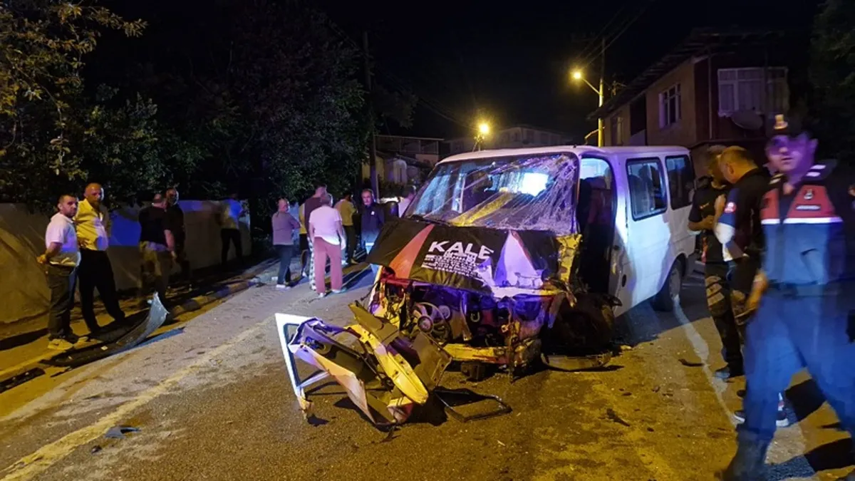 Karayaka beldesine giden Emre Kaan G. (22) yönetimindeki 05 DJ 104 plakalı minibüs, park halindeki 33 AZJ 208 plakalı pikaba çarptı.