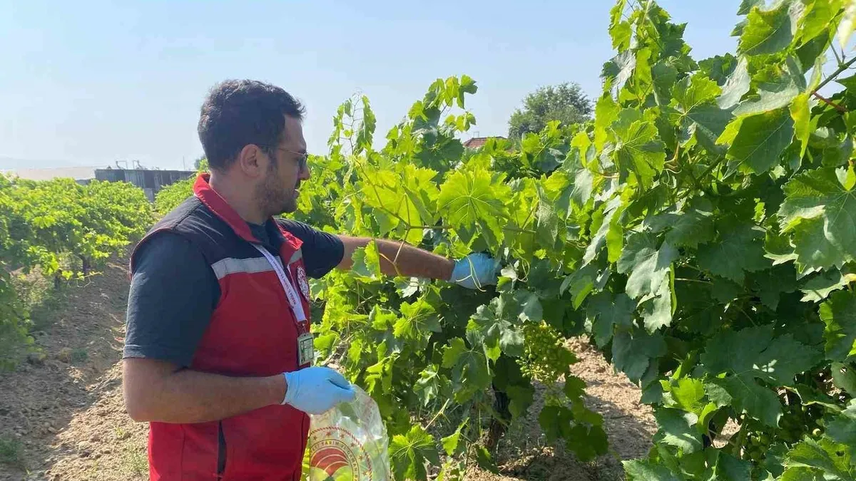 2025 yılı Hasat Öncesi Pestisit Denetimi kapsamında bağlardan asma yaprağı numune alımlarının devam ettiğini ifade eden Sarıgöl İlçe Tarım ve Orman Müdürü Ahmet Akar, "Ekip arkadaşlarımız tarafından üzüm hasadı öncesi üzüm bağlarından taze bağ yaprağı alınarak pestisit kalıntısı olup olmadığı incelenmektedir. Çalışmalarımız hasat öncesine kadar devam edecektir." dedi.
