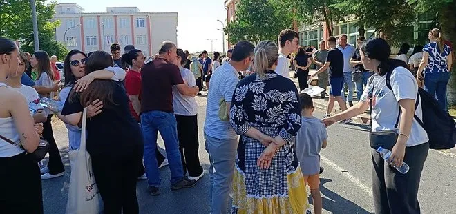 Adayların aileleri ise bina çevresinde çocuklarını bekledi.