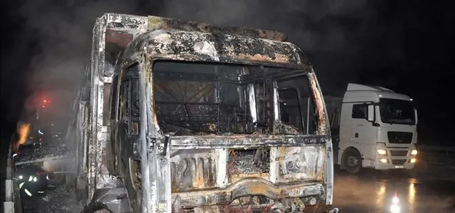 Sürücünün ihbarı üzerine bölgeye itfaiye ve polis ekipleri sevk edildi.
