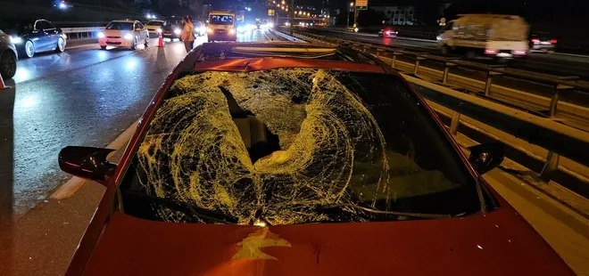Otoyolda karşıdan karşıya geçmeye çalışan adam otomobilin çarptı