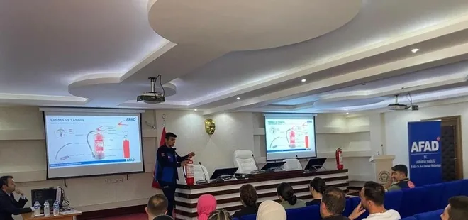 Valilik personeline yönelik olarak gerçekleştirilen yangın eğitimi kapsamında; Yangın anında yapılması gerekenler, tahliye yöntemleri, yangın söndürme ekipmanlarının kullanımı ve temel yangın güvenliği konuları verildi. AFAD müdürlüğü bünyesinde Arama Kurtarma Teknisyeni olarak görev yapan Ramazan Uçar ve Samet Yağcı tarafından,