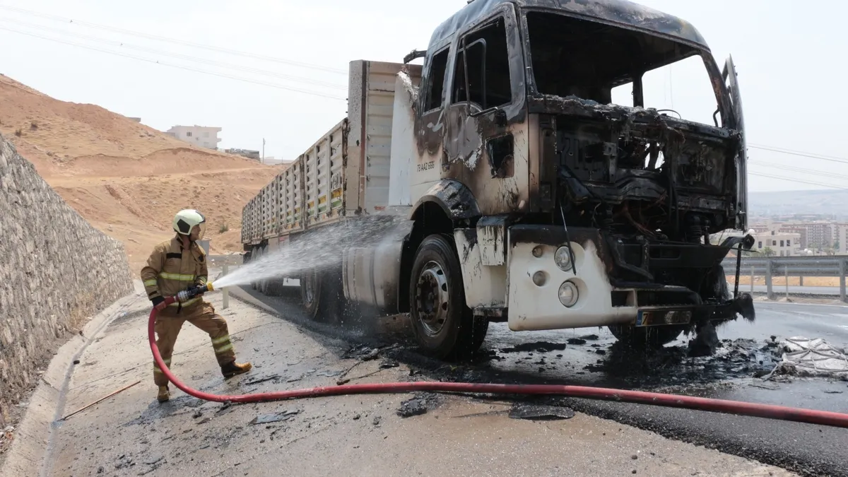 Şırnak'ın Cizre ilçesinde seyir halindeki tırda çıkan yangın, itfaiye ekiplerince söndürüldü.