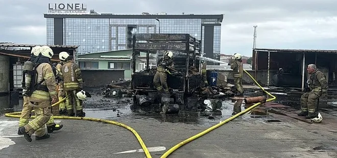 Bayrampaşa'da bir sanayi sitesinin otoparkında bulunan kamyonet alevlere teslim oldu. Kamyonetin yanında bulunan lüks araç da yangından zarar gördü.