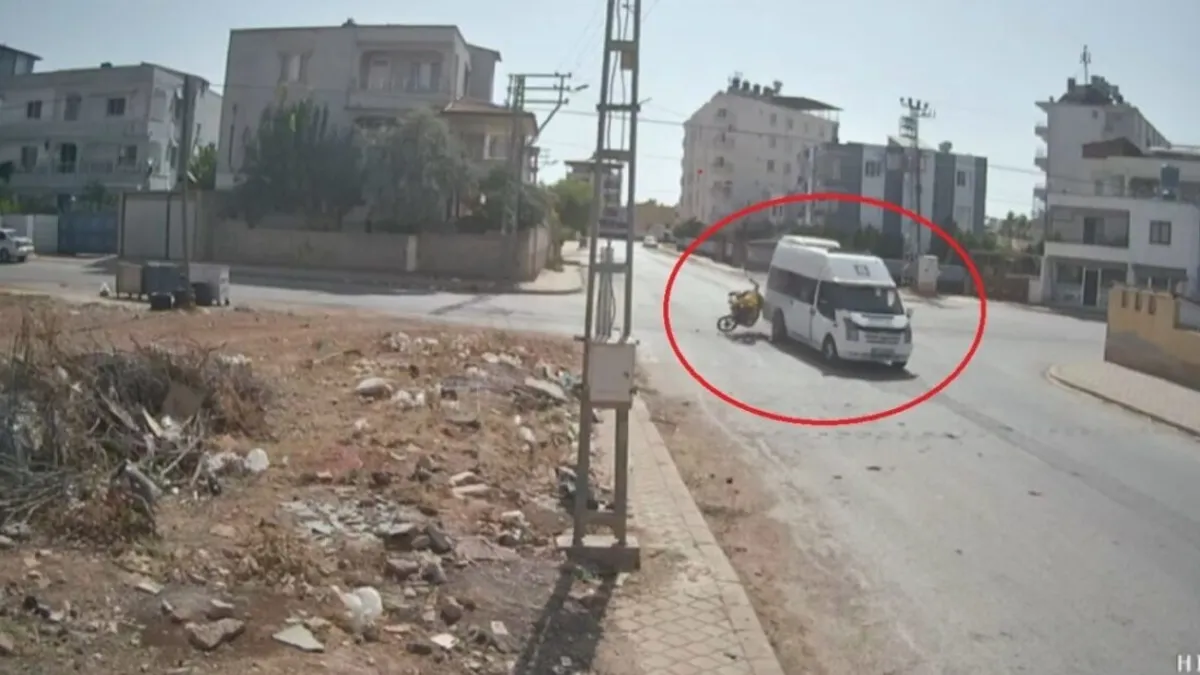 Hatay'da motosikletin, minibüsle çarpışmasıyla 2 kişinin yere savrulduğu anlar kameraya yansıdı.