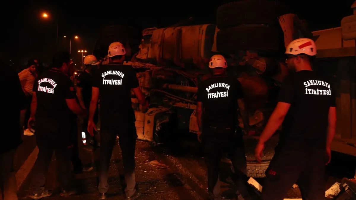 Kaza, Haliliye ilçesine bağlı Sırrın Mahallesi'nde meydana geldi. Edinilen bilgilere göre, sürücüsünün ismi henüz öğrenilemeyen 63 AIA 156 plakalı tır, aynı yönde seyir halinde olan 41 ALN 042 ve 63 AJS 028 plakalı iki araca çarptıktan sonra devrildi.
