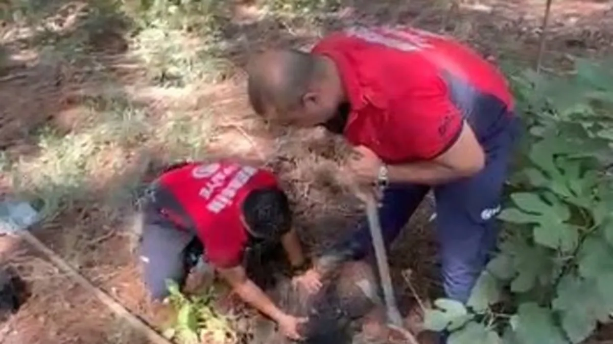 Mersin'in Tarsus ilçesinde, ormanlık alandaki çukura düşen köpek yavrusu itfaiye ekibince bulunduğu yerden çıkarıldı.