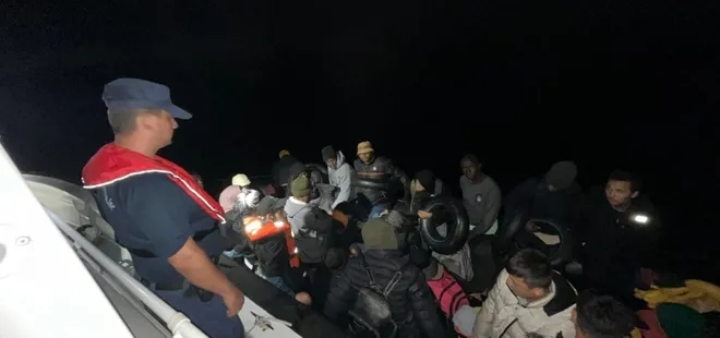 Bölgeye sevk edilen ekipler durdurulan hareketli botlardaki 5'i çocuk 87 düzensiz göçmeni kıyıya çıkardı.