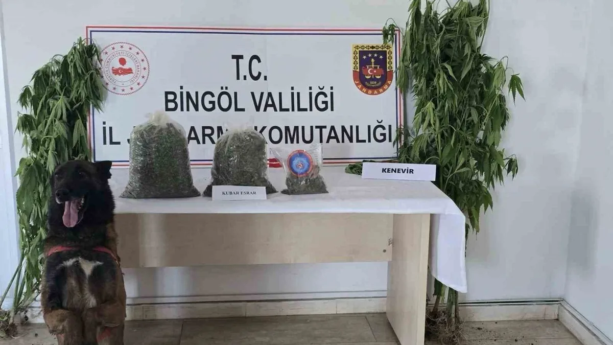 Bingöl Valiliği'nden yapılan çalışmada, "Bingöl İl Jandarma Komutanlığına bağlı, İsth.Ş.Md.lüğü, Merkez İlçe J.K.lığı/ Ilıcalar J.Krk.K.lığı ile Genç İlçe J.K.lığı ekiplerimizce, uyuşturucu madde imal ve ticareti ile yasa dışı ekimin önlenmesine yönelik yapılan çalışmalar neticesinde 4 farklı noktada toplam; 9.38 gram kubar esrar, 279 kök kenevir bitkisi ele geçirilmiştir. Olayın şüphelisi olduğu tespit edilen 1 şahsın yakalanmasına yönelik çalışmalarımız ise devam etmektedir" denildi.