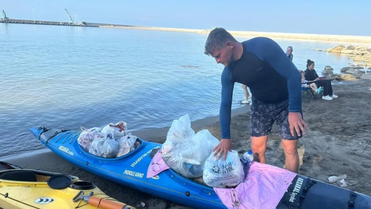 Kastamonu İnebolu'da yaşayan kano sporcusu Ahmet Ergün, sahile atılan çöpleri tek tek toplayarak kanosu ile taşıdı. Ergün, ardından topladığı çöpleri belediyenin çöp aracına teslim etti.