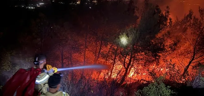 Aydın'ın Söke ilçesine bağlı Sazlıköy Mahallesi'nde saat 16.00 sıralarında makide çıkıp ormana sıçrayan yangında 10 saat geride kaldı. Alevlerin kontrol altına alınması için ekiplerin yoğun müdahalesi devam ediyor.