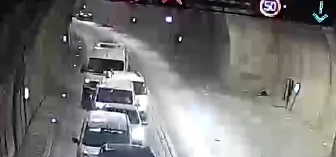 Amasya'da bulunan Ferhat Tüneli'nde sabah saatlerinde servis minibüsü ile 2 hafif ticari araç zincirleme kazaya karıştı. Olayda 2 kişi yaralanırken, kaza anları tüneldeki güvenlik kamerasına yansıdı.