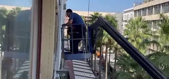 Adrese giden ekipler, hükümlünün kapıyı açmaması üzerine belediyeden vinç talebinde bulundu.