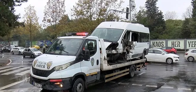 Sarıyer'de şoförünün direksiyon hakimiyetini kaybettiği servis minibüsü refüje çıkarak önce uyarı levhasına ardından trafik ışıklarına çarptı. Kazada serviste bulunan 2 kişi yaralandı.