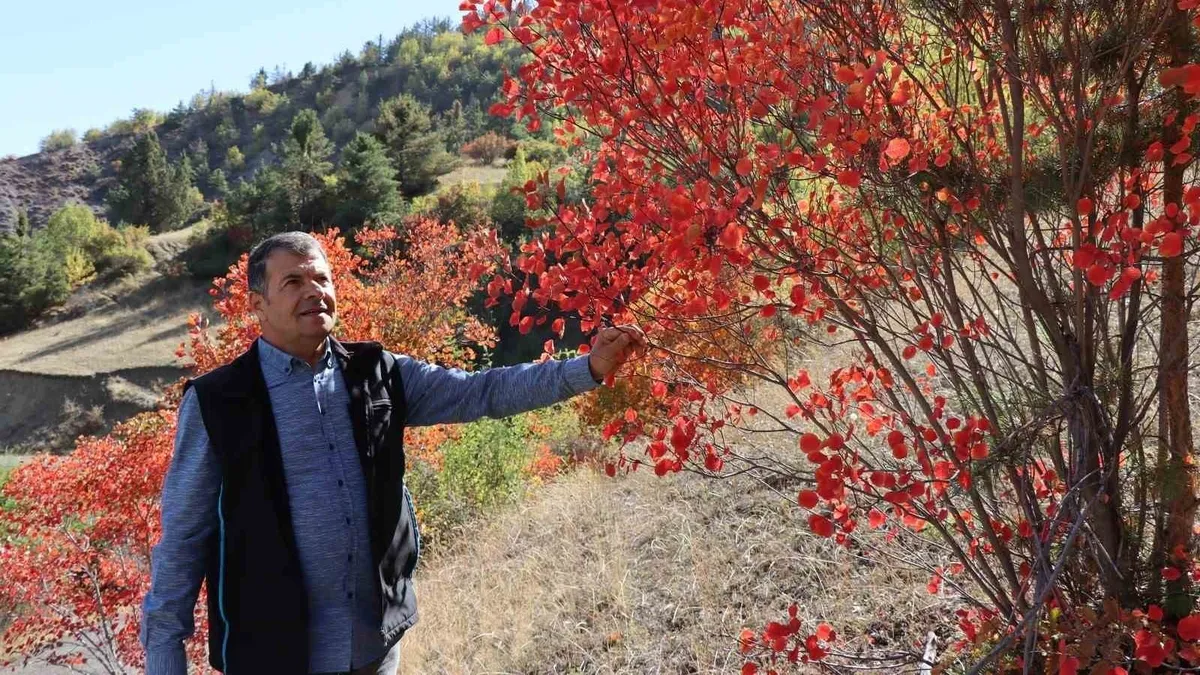 Erzurum'un Oltu ilçesine bağlı Arıtaş Mahallesi'nde sonbaharın gelişiyle birlikte doğa adeta kırmızıya büründü. Meralarda bulunan kaplaç (yabani kiraz) ağaçları, bu yıl sarı yerine kırmızıya dönen yapraklarıyla kartpostallık görüntüler oluşturdu.