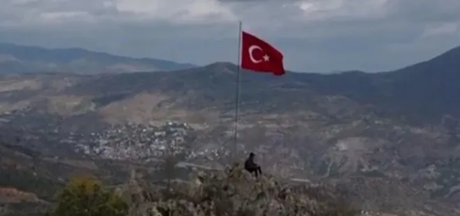 Direği Çağıltepe'nin zirvesine yerleştiren ve Türk bayrağını göndere çeken Bektaş, bu sırada çektiği videoyu sosyal medya hesabından paylaştı.