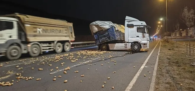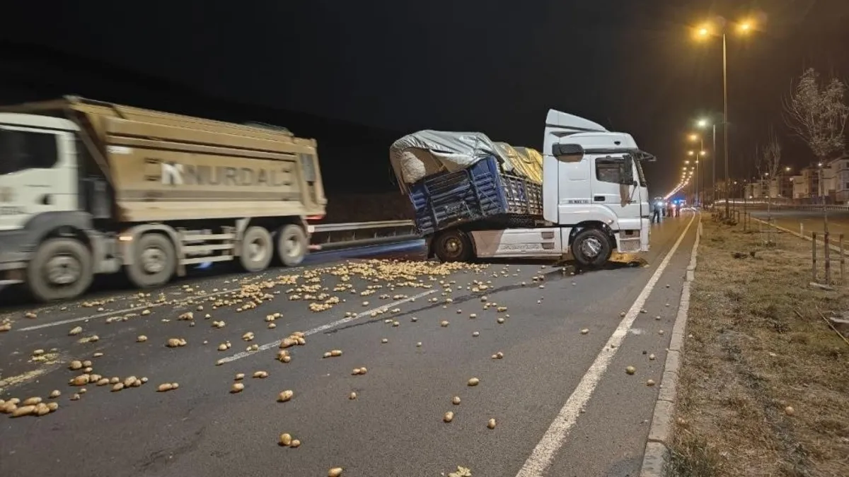 Kayseri'de yokuş aşağı inen bir tırın üzerinde bulunan onlarca kilo patates yola saçıldı. Patateslerin yola saçılması sonrası bölgede bir süre trafik aksadı.
