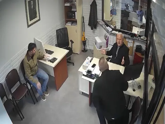 Burada iki kişi Naim G.'nin odasına gelerek, oğlunun Mahmut E. ile ticaret yaptığını ve kendisinden alacağı olduğunu iddia etti. Naim G. ise oğluyla yaklaşık 10 yıldır görüşmediğini söyleyerek oğlunun borcunun kendisini ilgilendirmediğini ifade etti. Bu cevap sonrasında sinirlenen 2 kişiyle Naim G. arasında tartışma çıktı. Tartışmada şüpheli 2 kişi Naim G.'yi 'Bu işi başka şekilde halledeceğiz' diyerek tehdit ettikten sonra iş yerinden ayrıldı. Yaşananlar güvenlik kamerasına saniye saniye yansıdı.