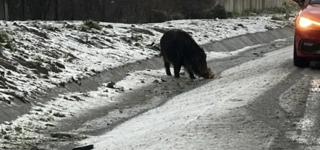 İstanbul'da etkili olan soğuk hava ve aralıklarla görülen kar yağışı, yaban hayatını da olumsuz etkiledi. Yiyecek bulmakta zorlandığı değerlendirilen yabani bir domuz, Hasdal-Kemerburgaz yoluna indi.