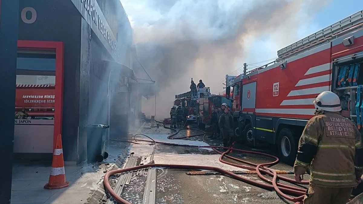 İzmir'in Buca ilçesinde, sanayi sitesindeki otomobil yedek parça dükkanında yangın çıktı. İtfaiye ekiplerinin alevlere müdahalesi sürüyor.