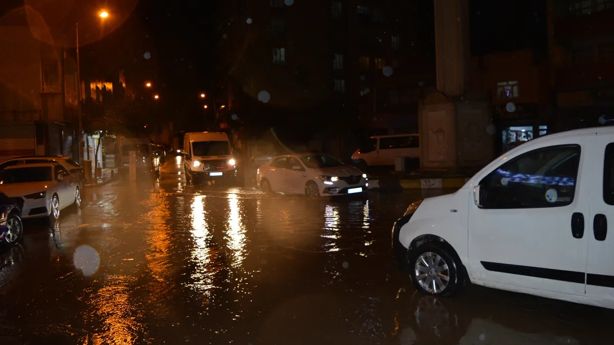 Kızıltepe ilçesinde akşam saatlerinde etkili olan sağanak nedeniyle birçok cadde ve sokak suyla doldu, araçlar ilerlemekte güçlük çekti.