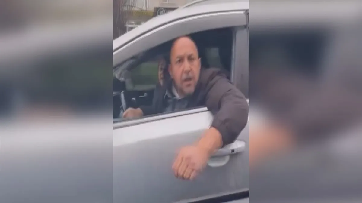 Bunun üzerine cip sürücüsü araçta çocuğu olduğunu belirten kadın sürücünün otomobiline saldırmaya başladı. Cep telefonuyla kaydedilen görüntülerde, cip sürücüsünün araca zarar verip, hakaret ettiği anlar yer aldı.