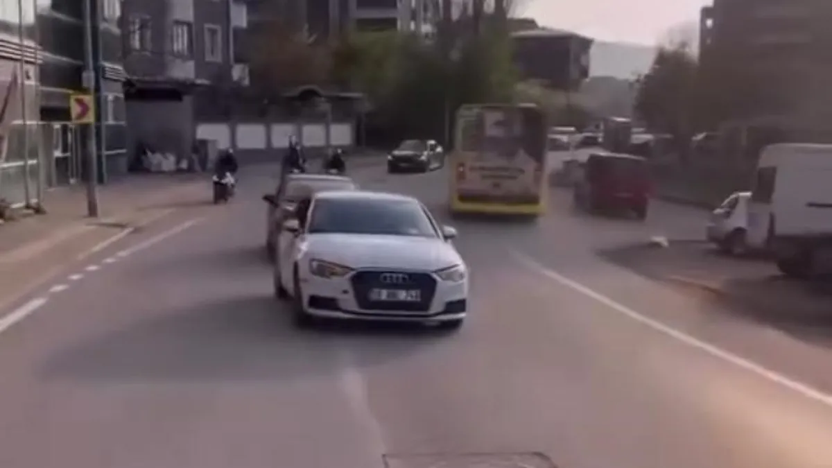 Konvoydaki tehlikeli hareketler, arkadaşları tarafından cep telefonlarıyla kaydedildi. Görüntüler daha sonra sosyal medyada paylaşıldı.
