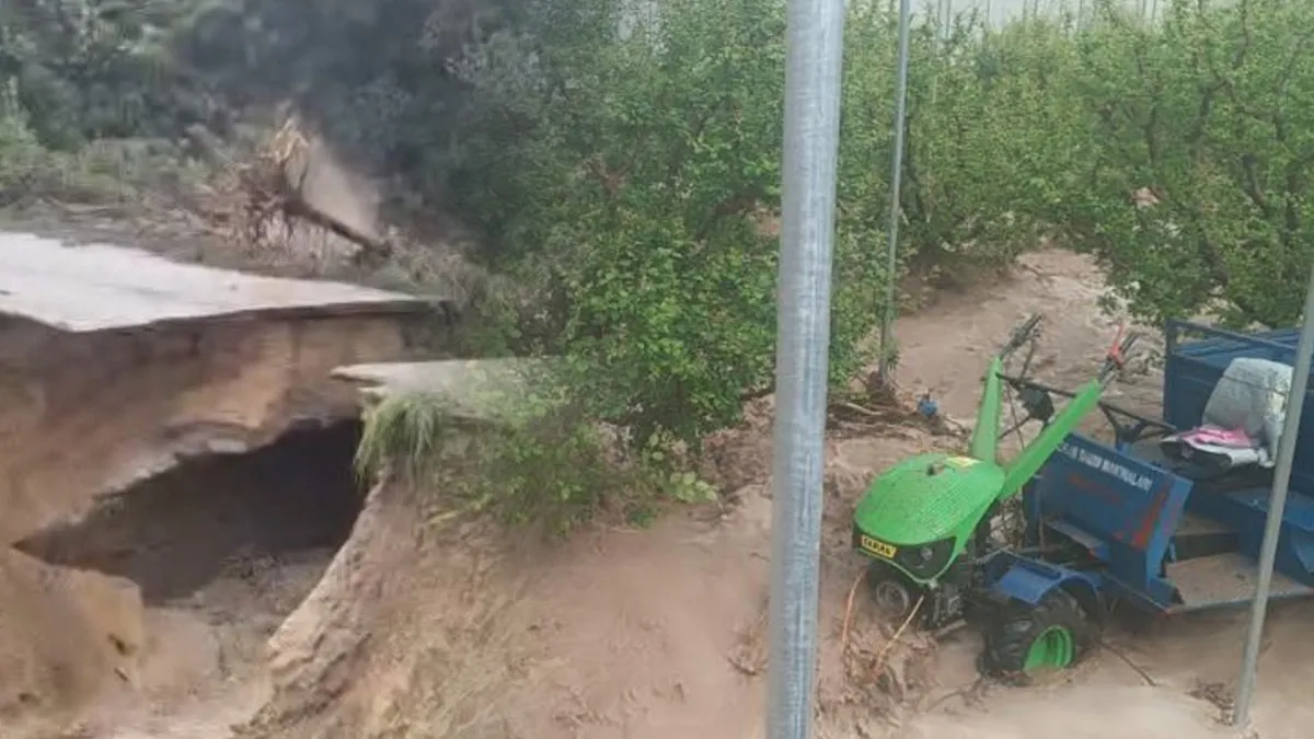 Mersin'de sağanak felaketi! Yol çöktü