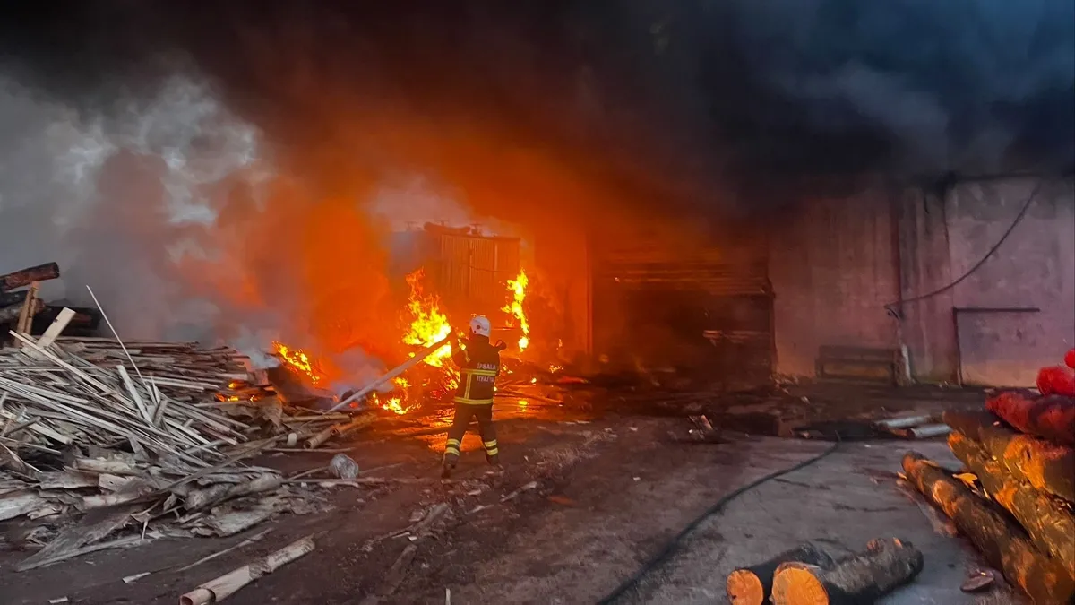 Edirne'de kereste fabrikasında çıkan yangına müdahale ediliyor.
