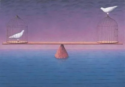Köşemdeki resme iyi bakın önce.. Uçsuz bucaksız bir deniz.. Denizin üzerinde bir tahterevalli.. Dünyanın her yerinde çocuk parklarının en popüler oyuncağıdır. Bu denizin üzerinde bir tahterevalli var işte.. İki ucunda iki kafes.. İki kafeste iki kuş.. Biri kafesin içinde..