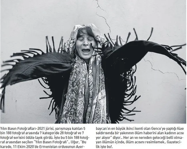 İşte bu derneğin 36 yıldır aralıksız düzenlediği "Yılın Basın Fotoğrafları Yarışması"nda, bu yıl, yani 2021'de büyük ödülü, "Yılın Basın Fotoğrafı Ödülü"nü Sabah Muhabiri Uğur Yıldırım kazandı.