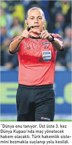 Türk hakemliğinin önünü bugüne dek 2 Dünya Kupası'nda maç yöneten, 3'üncüye de davet edilip, birkaç ay sonra Katar'da çalacağı düdükle dünya futbol hakemlik tarihine, 3 Dünya Kupası'nda üst üste düdük çalan hakem olarak geçmeye hazırlanan Cüneyt Çakır mı kesiyor, yoksa başta Çakır, 13 hakemi ligin başlamasından 28 hafta sonra ve bitmesine 10 hafta kala görevden alanlar mı?.