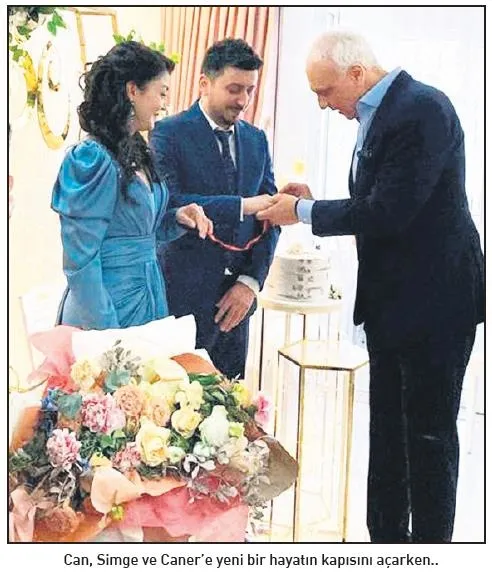 Can kalktı. Caner ve Simge'yi S ve C harfleri ile süslenmiş, çiçeklenmiş, taçlanmış köşeye çağırdı. Harika bir konuşma yaptı. Makası aldı.